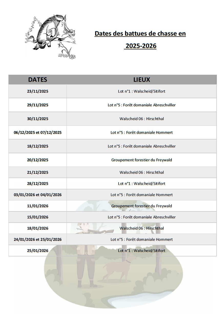• Dates des battues de chasse